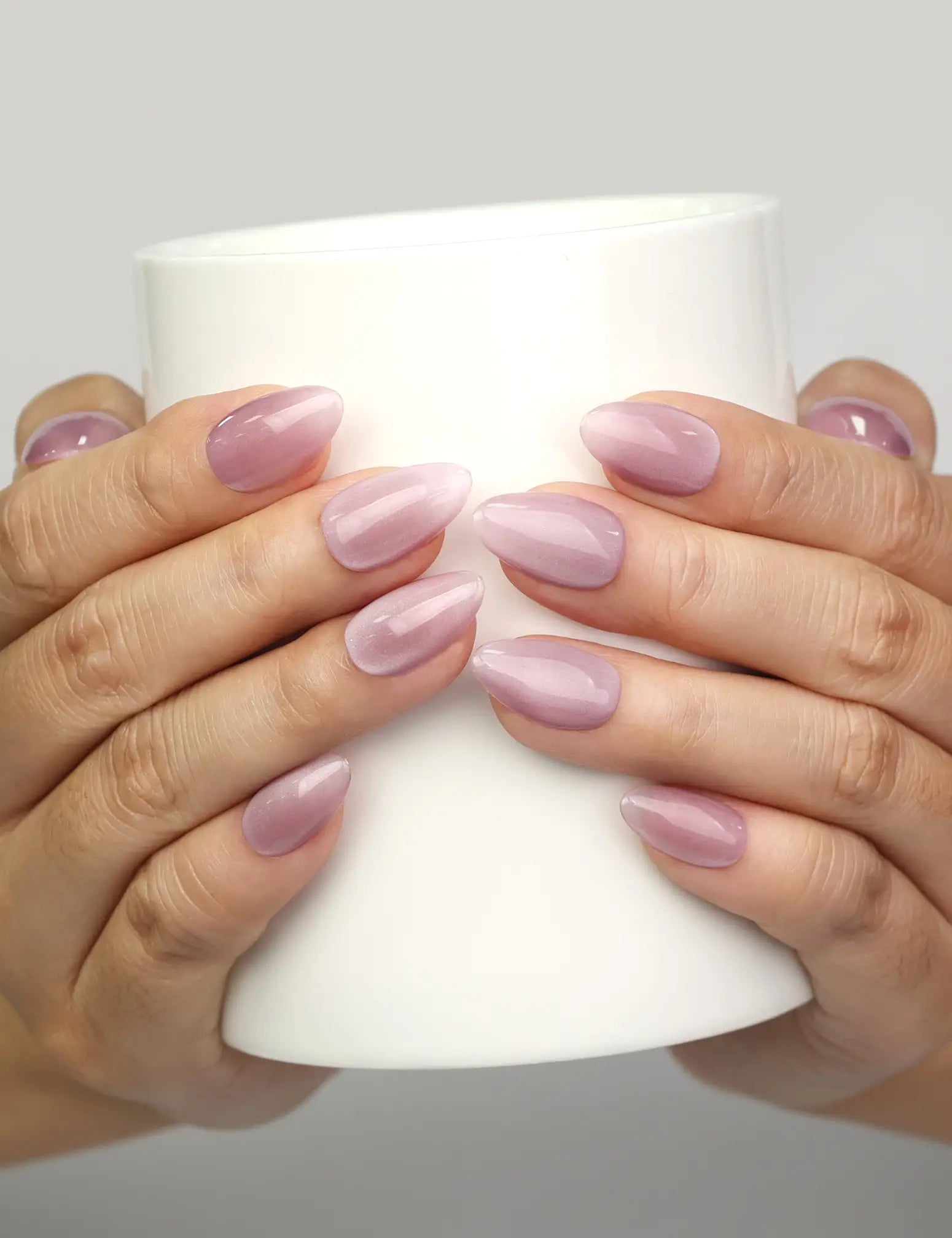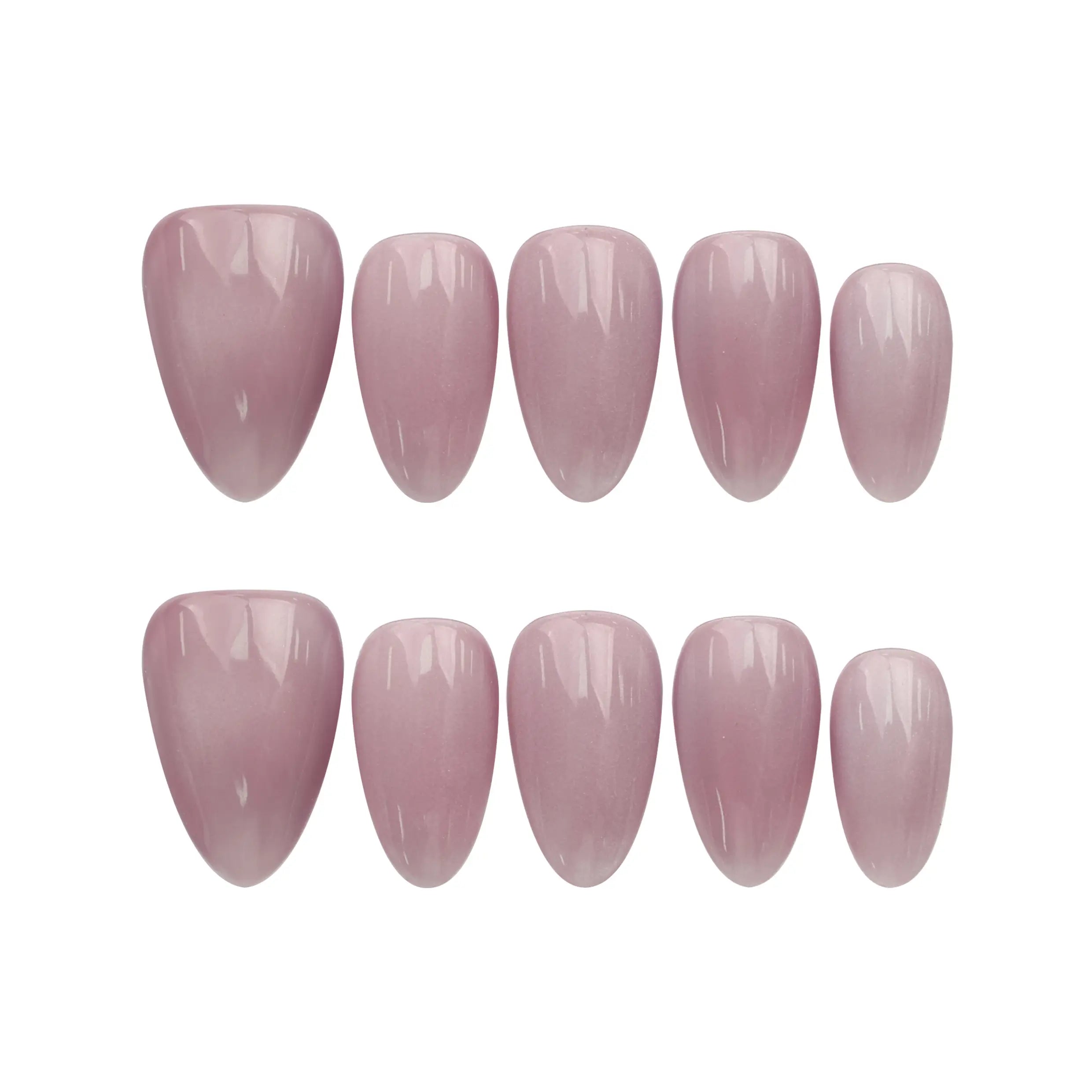 Unveil the mesmerizing shimmer of these elegant, almond-shaped handmade press on nail sets. This sophisticated design features a milky rose-pink shade enhanced with a captivating magnetic cat eye nails effect, creating a shifting, luminous band of light across each nail. Simple yet luxurious, these premium nails offer an effortlessly chic look perfect for everyday glamour or a subtle statement.
