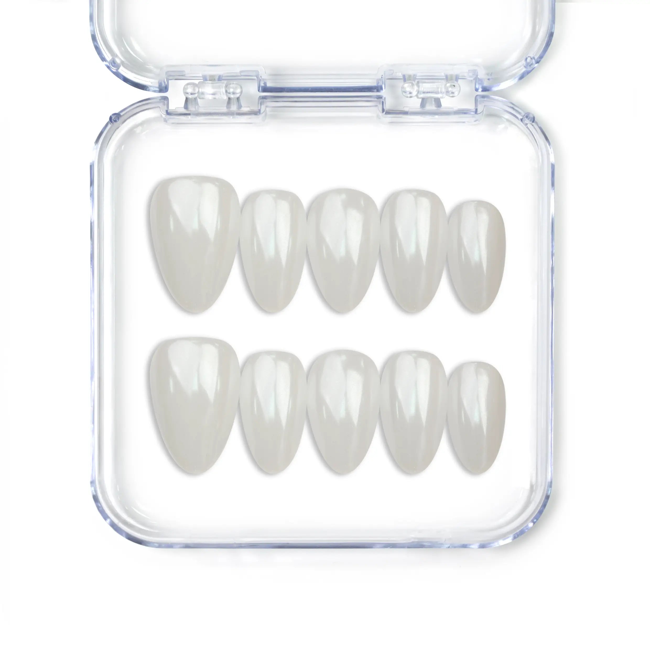 Embrace the quiet luxury trend with this elegant set of handmade press on nails. This sophisticated design features a milky white base coated in a flawless, high-shine pearlescent finish, creating a viral "glazed donut" effect. The beauty is in the minimalism—no complex decorations are needed, just pure, radiant glow. Perfect for achieving instant, everyday polish, bridal elegance, or office chic.